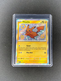 A rare shiny Pikachu card with its cool golden-yellow coloring. It’s got a shiny holographic finish, making it stand out in any collection. Part of a special set (like Shining Fates or similar), this card is a must-have for Pikachu fans and shiny hunters. Super cute and hard to pull!
